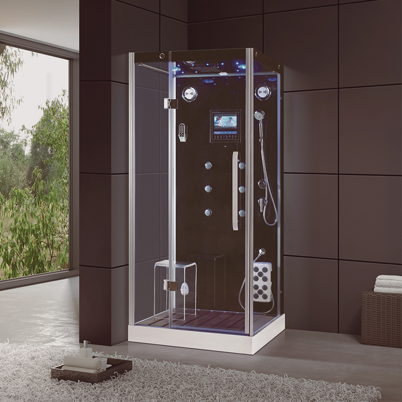 Radio/telephone/overtemperature protection/leakage protection function /ozone/emergency manual help/keyboard lock/Steam function, top shower function, 2 LED ceiling lights, back acupuncture massage function, hand-held shower. EXhaust fan function, hot and cold faucet/copper chrome hinge, transparent acrylic movable stool